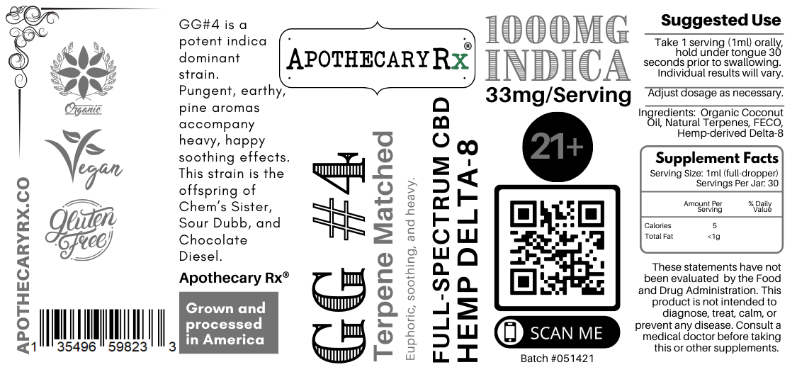 Apothecary Rx Delta 8 GG #4 Indica 1000mg 30ml